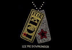 Description: Star Ice wanted maximum bling with their rhinestone logo translation, so we filled the whole logo, with the words Star Ice cut out in negative. The shirt was featured on Access Hollywood.